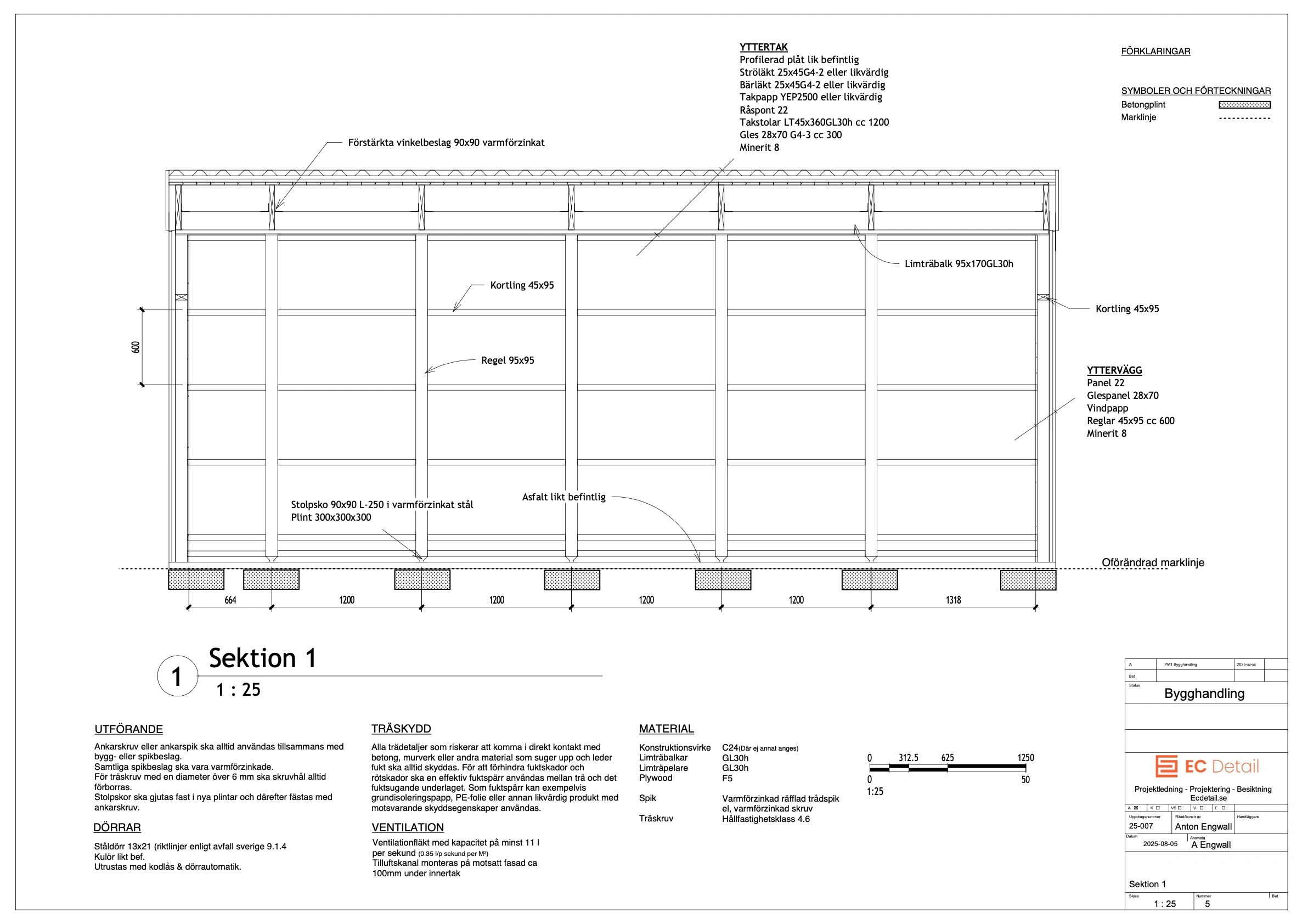 Ritningar av tillkommande miljöhus, mellan befintliga garagebyggnader